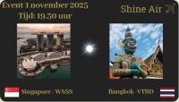 Event 01-11-2025 | Een event waar we samen gaan vliegen van Singapore (Singapore) naar Bangkok(Thailand) Vluchtnummer SA111, we vertrekken vanaf runway 02L en landen op 21R |